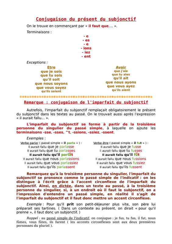 Rappel : pour trouver le subjonctif présent d'un verbe, on commence par "il faut que".