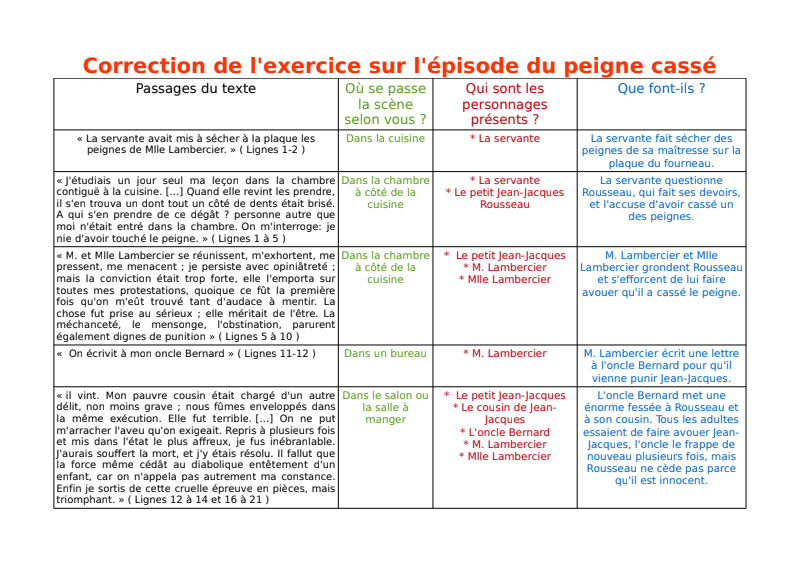 5) Voici la correction que je vous propose pour ce tableau. Merci de la lire attentivement. Ensuite, corrigez vos éventuelles erreurs sur votre feuille, s'il vous plaît. Il peut bien sûr y avoir de petites différences entre votre tableau et le mien : n'hésitez pas à me poser des questions au besoin pour savoir si vous pouvez laisser ce que vous aviez écrit ou non.
