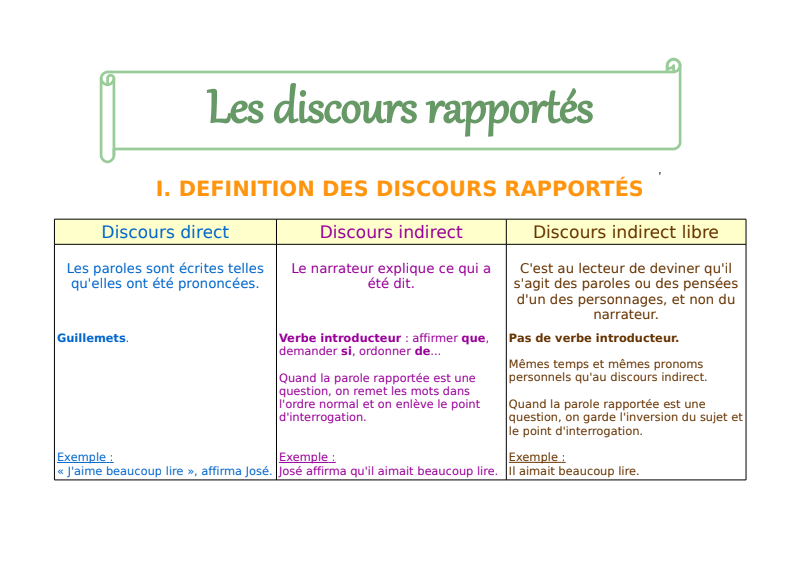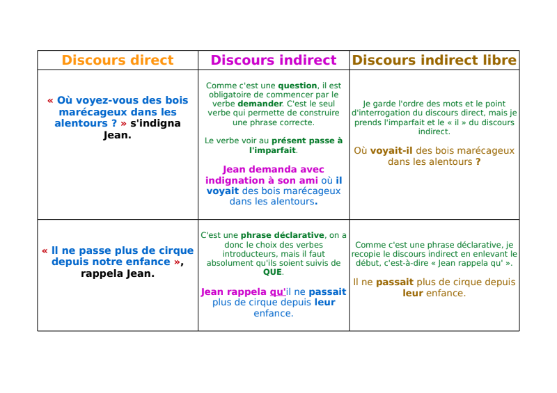 Pour de meilleures chances de réussites, j'aimerais, s'il vous plaît, que vous lisiez les deux pages de ce récapitulatif sur les discours rapportés avant de vous lancer dans l'exercice.
