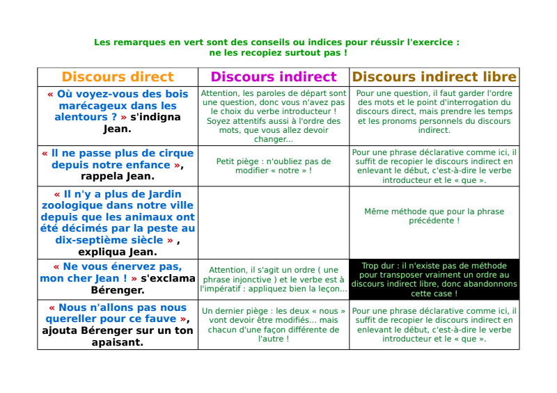 2) Nous allons faire une seule activité, qui va consister à mettre des paroles au discours indirect et, dans la mesure du possible, au discours indirect libre.