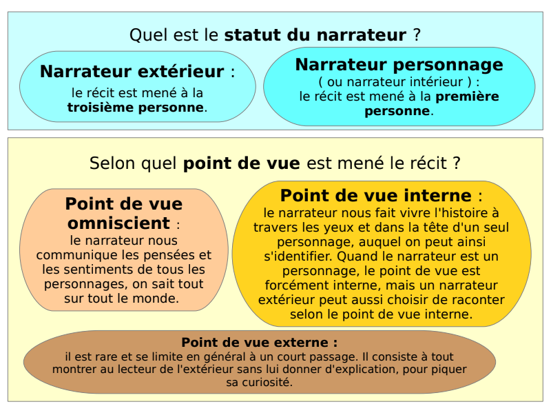 2) Pour commencer, un petit coup d'oeil rapide à la fiche sur le statut du narrateur et le point de vue du récit, que je vous ai déjà montrée l'autre jour :